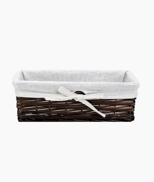 Небольшая плетеная корзина органично впишется в любой интерьер и поможет организовать пространство на туалетном столике, прикроватной тумбочке или в ванной.