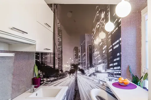 Можно размыть границы пространства, используя приемы поп-арта (вариант для самых решительных) или простые фотообои. Это, пожалуй, самый простой способ направить взгляд и дорисовать недостающую квартире перспективу.
