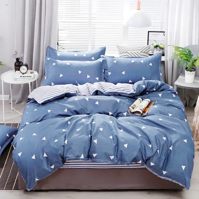Дизайн. Стильный, лаконичный комплект придется по вкусу и мужчине, и женщине. Насыщенный, темно-голубой оттенок дополнен мелким принтом в форме треугольников. Внутренняя сторона пододеяльник и простыня оформлены полосками в морском стиле. Постельное белье смотрится спокойно, умиротворяюще и визуально настраивает на крепкий, приятный сон.