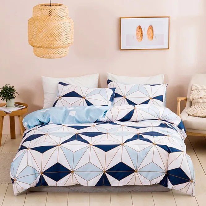 Дизайн. Постельное белье смотрится ярко, но в то же время не кричаще. Красивое сочетание цветов и геометрический принт выделяют его на фоне других комплектов. Такая модель отлично дополнит интерьер комнаты, выполненной в современном стиле, а также послужит полезным подарком для творческой личности, предпочитающей броские, креативные вещи.