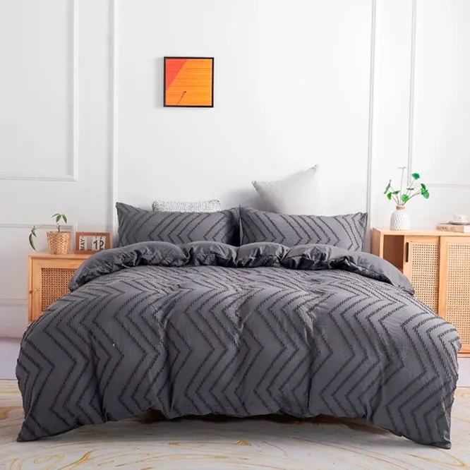 Дизайн. Серый — цвет сложный, но при этом элегантный и благородный. Он имеет множество оттенков, которых куда больше, чем 50. Найти насыщенный, глубокий и дорогой серый цвет не так-то просто, но нам удалось разыскать такой на сайте AliExpress. Строгость ткани компенсирует фактурная вышивка в форме зигзагов — она делает домашний текстиль солиднее, изысканнее. Такой комплект отлично дополнит комнату в классическом стиле, а также в стиле лофт. Серое постельное белье добавит интерьер брутальных ноток, подчеркнет смелость и силу хозяина/хозяйки дома. Отличный вариант для подарка — комплект будет уместно вручить мужу, начальнику или родителям.