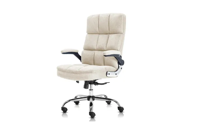 Ультрамягкое рабочее кресло с откидными подлокотниками с обивкой из мягкой бархатистой ткани, которая легко чистится. Спинка имеет сегментированное строение, разделенное на три секции: шея, спина, поясница. Благодаря этому спина меньше устает и не болит после долгой сидячей работы.