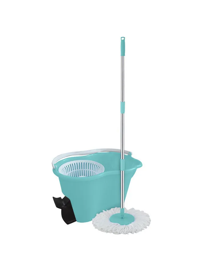 Набор включает округлое ведро и швабру. Ведро оснащено системой отжима. Его центрифуга удобна тем, что не позволяет каплям воды разбрызгиваться за пределы ведра. Можно сказать, что это самая удобная недорогая швабра, которая обеспечит качественное протирание пола.