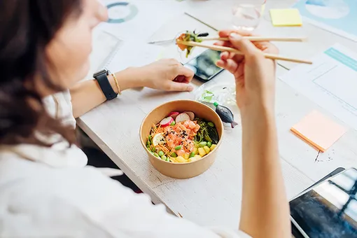 В среднем человек проводит на рабочем месте девять часов (с учетом перерыва на обед) плюс дорога. Очевидно, что худший вариант– не есть все это время вообще ничего. Похудеть таким образом вряд ли получится, а вот сорвать ЖКТ – запросто. Поэтому к вопросу подойдем серьезно.