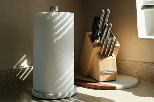 Некоторые разделочные доски могут скользить по столешнице, что не только неудобно, но и небезопасно. Используй влажное бумажное полотенце — постели его под доску, и сможешь спокойно орудовать ножом.