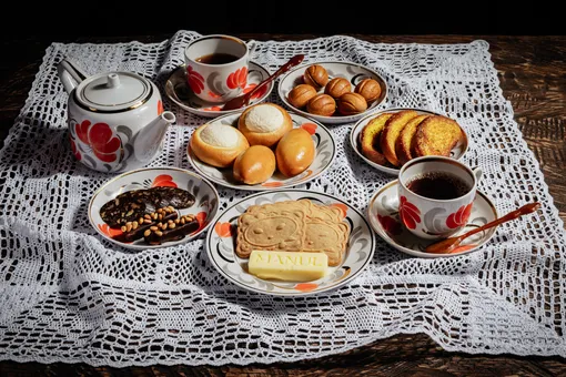 «Чаепитие у бабушки» от шеф-кондитера ресторана Полины Андреевой — это погружение в атмосферу детства, согретое треском огня и ароматами чая со смородиной и мятой. А еще отличный способ согреться и чудесно провести время вдвоем после прогулки по зимней Москве. Всё здесь продумано до мелочей: сервиз «Ноготки» 1960-х годов с крупными оранжевыми цветами и золотой каймой, кружевные салфетки, любимые сладости из детства.