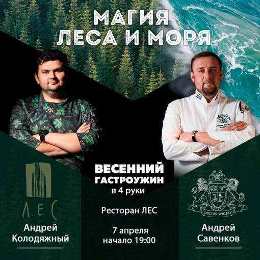 В начале апреля состоится первый ужин в четыре руки из цикла встреч Андрея Колодяжного с шеф-поварами из дружественных проектов со всей России. Первым гостем станет Андрей Савенков, бренд-шеф ресторана DOCTOR WHISKY (Ялта), ужин с которым в ресторане Л.Е.С. запланирован на 7 апреля. Примечательно, что шефы составили меню из семи курсов, полностью отвечающее постной повестке апреля и соединили в нем магию даров леса и моря. В меню постного ужина философия гастроботаники в четырех подачах от Андрея Колодяжного соединится с тремя позициями от Андрея Савенкова – хайлайтами, отражающими его видение классики в растительном исполнении.