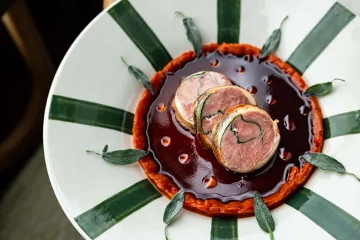 Главное блюдо — седло ягненка с сицилийской капонатой, а на десерт полагается авторская сладкая «Карта Испании».