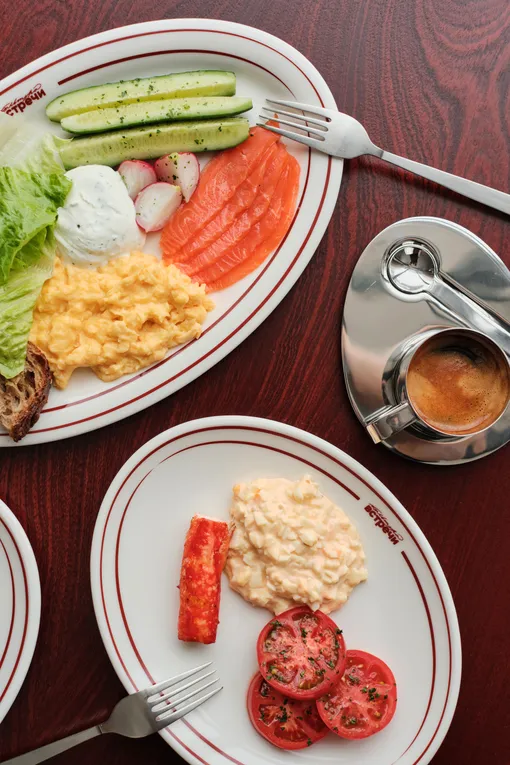 Кураторы кухни Владимир Чистяков и бренд-шеф Тимофей Сулима находят тонкий баланс между домашним уютом и авторской подачей. В их интерпретации омлет может быть с белыми грибами и черным трюфелем или с красной икрой и творожным сыром, томаты — сочетаться со свежим крабовым мясом и кремовым яйцом, а блины — покрываться горкой творога и черной смородины поверх крема из вареной сгущенки.
