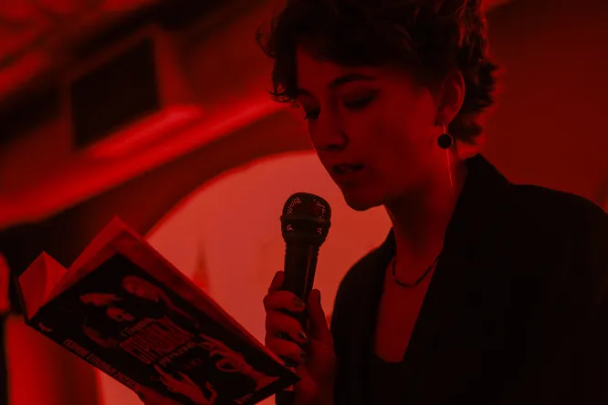 Событие продолжилось выступлением одного из авторов «Сборника страшных рассказов» Олеси Левиной. Олеся прочла отрывок из своего произведения «Мелкая рыбешка».