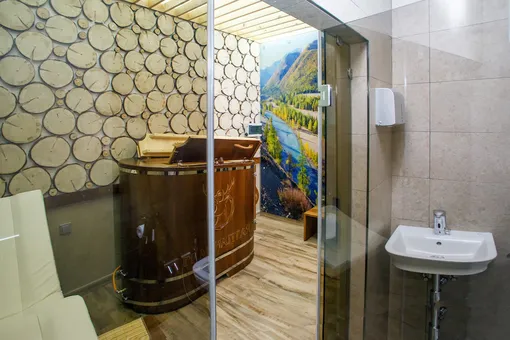 Как все это выглядит? В среднем продолжительность одной процедуры составляет 10–15 минут. Перед процедурной необходимо принять теплый душ (здесь же — и очень комфортный), а после положен отдых на кедровой кушетке (занимает около часа). Из приятных бонусов — березовый сок (привезен замороженным, без каких-либо добавок) и чай с алтайским медом.
