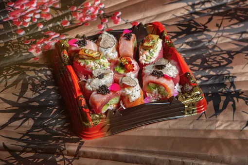 Онлайн-ресторан японской кухни Naomi Sushi и бренд-шеф Олег Шин подготовили специальный сет, в составе которого сашими ролл с лососем и трюфельным крабом, суши в лососе с гребешком и трюфелем, cуши в тунце с крабом и фуагра, суши в тунце с сибасом и трюфелем — а при заказе дают сертификат определенного номинала на любые услуги в салоне Los Brows. Где, кстати, 8 марта можно будет попробовать авторские моти с дубайским шоколадом от Naomi — и получить сертификат на заказ в японском ресторане.