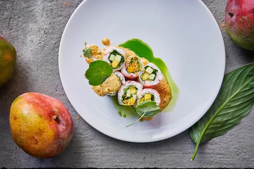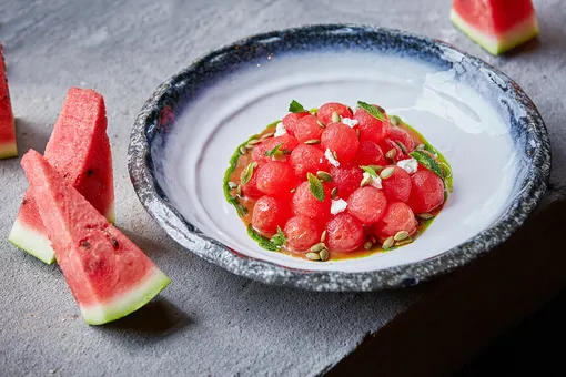 В разделе салатов появились два новых блюда: идеально сбалансированный салат с артишоком, печеным баклажаном и креветками (880 р) и освежающий салат с арбузом, домашней брынзой и соком граната (640 р). Любителям паназиатской кухни придутся по вкусу спринг-роллы с камчатским крабом (940 руб.). Нежное крабовое мясо Шеф смело добавляет ещё и в имеретинский хачапури (990 руб.), и в лагман на пряном бульоне (1330 руб.), что превращает эти, в общем-то, предсказуемые в обычной жизни блюда в совершенно потрясающие и гурманские.