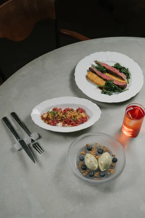 Команда ресторана во главе с шефом Антоном Счетчиковым вновь входит в сезон с обновлением, от которого невозможно оторваться. Например, этой весной в разделе «Мезе» стоит попробовать густой лабане со свеклой и миндалем, а для дополнения стоит выбрать нежную греческую лепешку с козьим сыром и черным трюфелем. В разделе «Крудо» интерес вызывает карпаччо из тунца с арбузом и зеленым чили, а в предложении «Печь/гриль» — лангустины в томатно-овощном соусе и рис в томатном соусе с красной сицилийской креветкой. Отдельного внимания заслуживает рыба: в обновлении сразу две любопытных позиции — стейк из лосося с кукурузой и сливочным соусом и запеченное филе сибаса с фенхелем и креветочным биском.