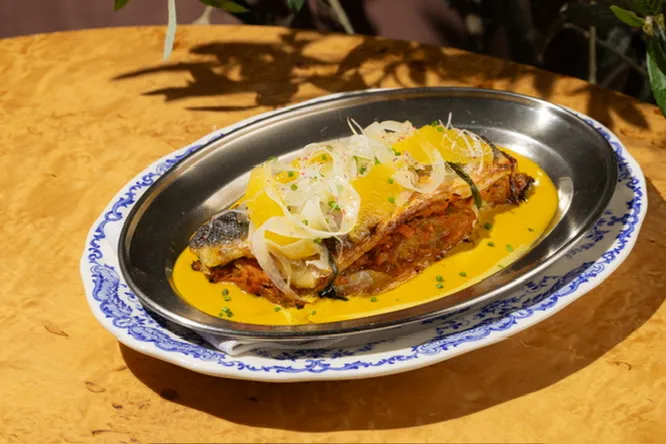 Команда ресторана во главе с шефом Антоном Счетчиковым вновь входит в сезон с обновлением, от которого невозможно оторваться. Например, этой весной в разделе «Мезе» стоит попробовать густой лабане со свеклой и миндалем, а для дополнения стоит выбрать нежную греческую лепешку с козьим сыром и черным трюфелем. В разделе «Крудо» интерес вызывает карпаччо из тунца с арбузом и зеленым чили, а в предложении «Печь/гриль» — лангустины в томатно-овощном соусе и рис в томатном соусе с красной сицилийской креветкой. Отдельного внимания заслуживает рыба: в обновлении сразу две любопытных позиции — стейк из лосося с кукурузой и сливочным соусом и запеченное филе сибаса с фенхелем и креветочным биском.