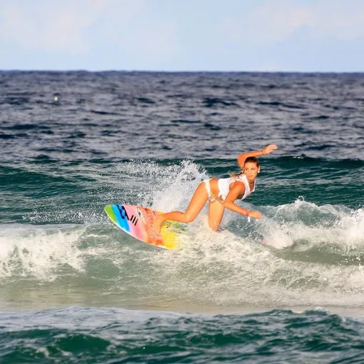 Алёна Мальцева выложила яркое летнее фото на сёрфе. Она рассказала о пользе серфинга и доказала ее одним своим видом.