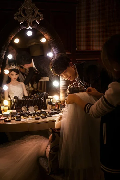 Хотя «возлюбленная» молодого человека ненастоящая, он нанял для нее вполне реального визажиста и купил несколько нарядов. Помимо традиционного свадебного платья, куклу одели в сиреневый романтичный наряд.