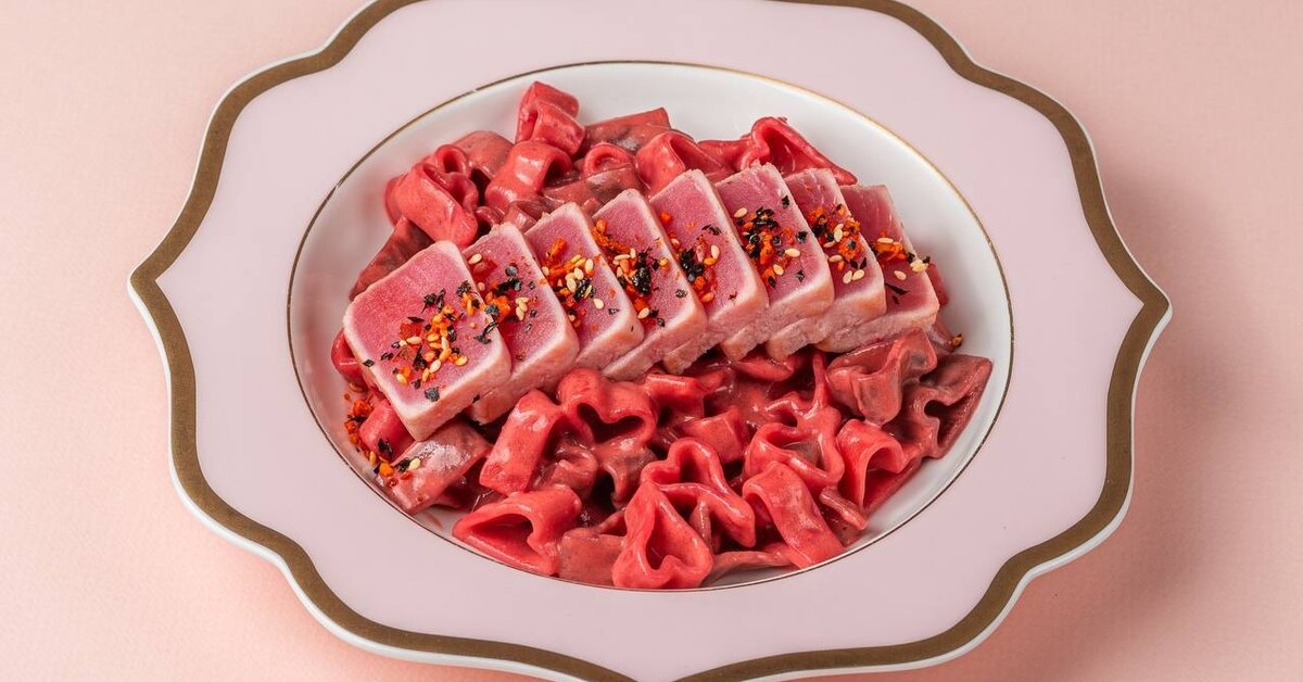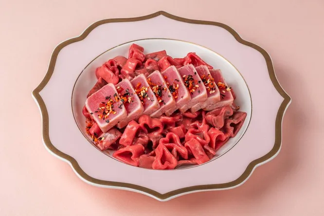 В новой точке на Новослободской действует то же меню, что и на Кузнецком Мосту — все пасты на месте. Бренд-шеф Bazar Family Евгений Насыров предлагает десятки вариаций: от классики до дерзких сочетаний. Среди хитов — розовая «Паста любви» с тунцом (на обложке дайджеста), пряная Dragon Queen с креветками и икрой тобико и ризо чикен карри с хрустящим чили. Также подадут зеленый салат Pasta Queen и мутабаль с чипсами из пасты, а любителям экспериментов — картофель фри с мороженым. Но десерт тоже будет: шоколадный бисквит с вишней и кремом, стилизованный под макароны с сыром (называется сладучини).