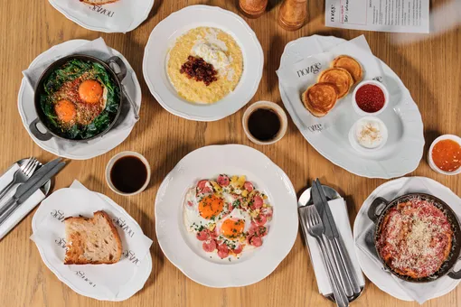 Московская провинция в меню — это гречневая каша с потрошками и белыми грибами, пельмени из мраморной говядины и ностальгические бутерброды с жареной колбасой и мясной котлетой, переосмысленные в духе городской классики. Завершает маршрут Фрязино: яйца Бенедикт, фленк-стейк с яйцом, шакшука и миндальный круассан напоминают о том, что иностранные по происхождению блюда уже частью московских утренних привычек. Завтраки по этому «провинциальному» меню подают ежедневно с 08:00 до 12:00, так что отправиться в гастрономическую экспедицию можно прямо с утра пораньше.