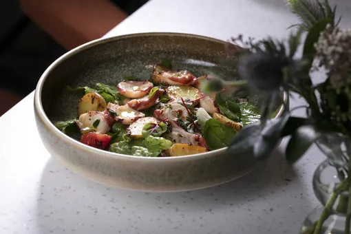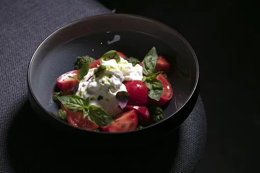 За кухню отвечает шеф-повар Никита Овчинников, влюбленный в энергию и стиль итальянской кухни и проводящий ее сквозь призму собственного видения. Классические стартеры предстают перед гостем в воплощении, принципиально отличающемся от привычного: буррату с хурмой Никита дополняет дрессингом на основе лавандового меда (750 руб.), а татаки из лосося подает под соусом юдзу с лепестками арбузной редьки (670 руб.). Среди супов – традиционный тосканский каччукко из томатов и морепродуктов с филе сибаса и моллюсками вонголе (670 руб.) и тыквенный крем с маскарпоне (450 руб.).