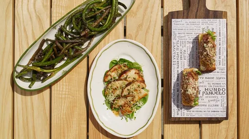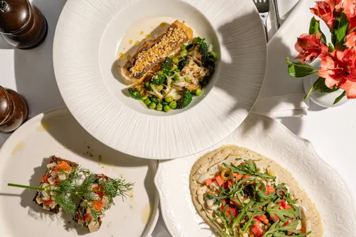 В основное меню вошли блюда, сочетающие традиционные рецепты с современными акцентами. Спагетти с севиче из креветки и гребешка подаются с соусом на основе сливочного масла и петрушки, дополняя остро-кисло-сливочный вкус маринованными морепродуктами. Стейк бавет дополняют запеченный перец и чимичурри — яркий соус из петрушки, чеснока и каперсов, создающий идеальный контраст с мягким мясом. В меню также появилась оригинальная окрошка с мортаделлой, печеным картофелем и квасом с кефиром. Для любителей морепродуктов — севиче из гребешка с малиновым сорбетом и брокколи гриль с йогуртом, чимичурри и пекорино. На десерт полагается классический крем-фреш с клубникой.