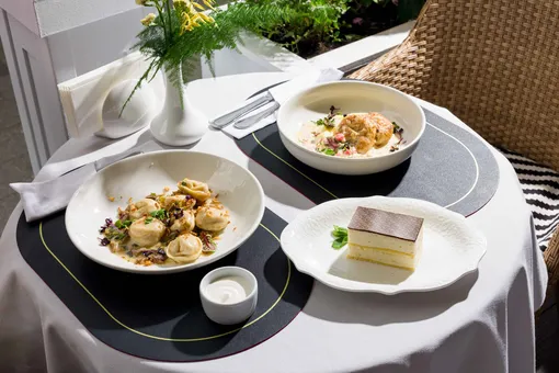 В Кафе «Чайковский» (Москва, Триумфальная площадь 4/31) шеф-повар Алексей Чигак создал меню, где каждое блюдо отражает традиции трех регионов России. Из филе якутской щуки готовят нежные котлеты с луком-пореем и сливками, за Ростов-на-Дону отвечают вареники с картофельным пюре — их подают с жареными белыми грибами, хрустящим луком и сметаной. Ну а Москву символизирует классический десерт «Птичье молоко».