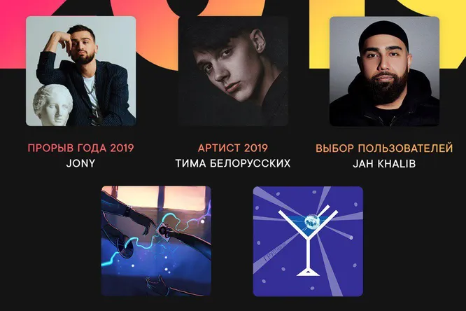 «Артистом 2019» стал Тима Белорусских — в VK и BOOM его песни послушали больше миллиарда раз в этом году. За ним же — победа в номинации «Альбом 2019»: релиз «Твой первый диск — моя кассета» слушали чаще всего. «Песней 2019» признали «Грустный дэнс» от Artik & Asti feat. Артём Качер.
