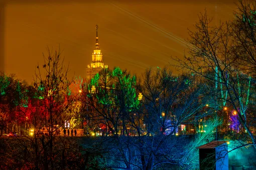 На территории Московского дворца пионеров гостей ежедневно будет ждать световое шоу: благодаря современным технологиям на фасаде главного здания посетители увидят праздничные сюжеты зимних сказок, а на территории парка — северное сияние и животных, обитающих на территории России.