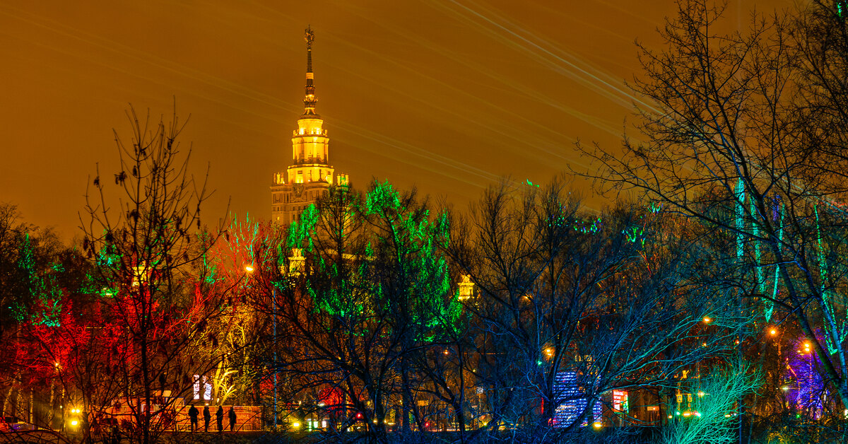 На территории Московского дворца пионеров гостей ежедневно будет ждать световое шоу: благодаря современным технологиям на фасаде главного здания посетители увидят праздничные сюжеты зимних сказок, а на территории парка — северное сияние и животных, обитающих на территории России.