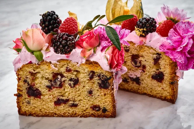 Шеф-кондитер ресторана Madison Анастасия Ломова превратила кулич в настоящий цветочный десерт! В плотное тесто из пшеничной муки добавили вишнёвые цукаты, сверху покрыли швейцарской меренгой с вишневым ликером и украсили свежими цветами, ягодами и частичками сусального золота.