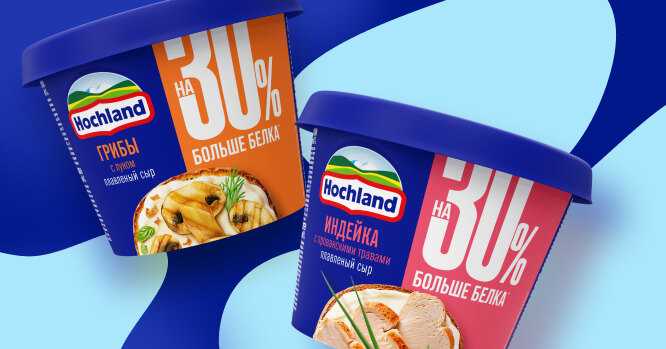 *по сравнению с плавленым сыром Hochland с грибами и плавленым сыром Hochland с ветчиной.