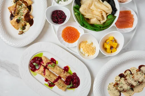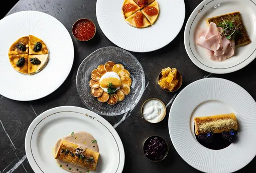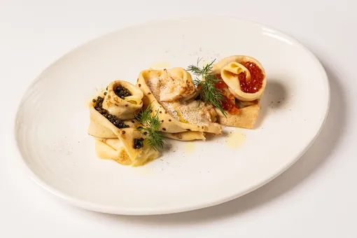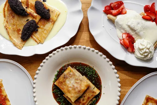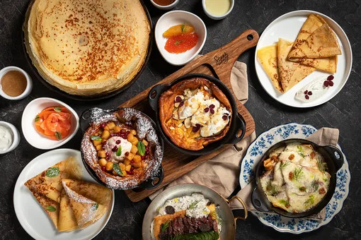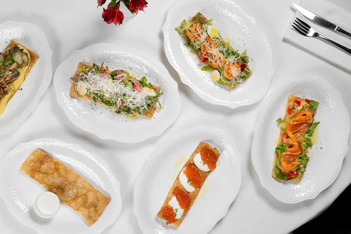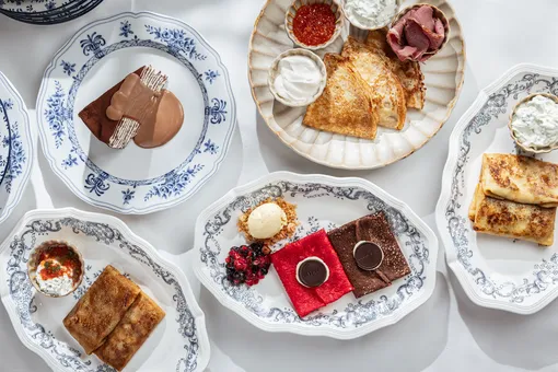 Шеф-повар Сергей Волконенков создал девять блинных подач — от закусочных до десертных — с акцентом на сезонные и деликатесные ингредиенты.
