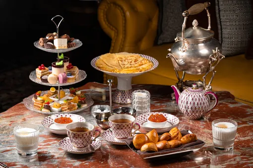 С 16 по 22 февраля команда бара «Шаляпин» при отеле «Метрополь» приглашает на празднование долгожданной Масленицы. Шеф-повар Сергей Степанцев под руководством бренд-шефа Андрея Шмакова подготовил несколько самостоятельных форматов. В камерной атмосфере бара, наполненного отсылками к творчеству оперного певца Федора Шаляпина, можно заказать специальный сет, разработанный для этой недели. В него вошли классические и дрожжевые блины, а также гречишные оладьи. Их дополняют красной и щучьей икрой, перепелиным яйцом, сметаной, вареньем, медом и сгущенкой. Отдельными позициями представлены — блины с камчатским крабом и красной икрой, а также блины с курицей и грибами в соусе из сморчков. Особое место в меню занимает гранд-завтрак «Дубинушка» — масштабная подача на две персоны. Высокая этажерка с пшеничными блинами и гречишными оладьями дополняется тремя видами икры, рыбой, молодым картофелем и малосольными огурцами. В качестве пейринга шеф-бармен Сергей Петров сможет подобрать горячие или холодные напитки: авторские лимонады и коктейли с русскими мотивами, какао и кофе, а также разнообразные сорта чая — алтайский травяной сбор, Лун Цзин «Колодец дракона», Дянь Хун и другие варианты.