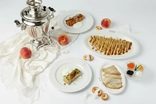 В ресторане Peach тем, кто хочет сытно подкрепиться, предложат блины с фуа-гра и мраморной говядиной. Если нужно что-то более изысканное — есть варианты с трюфелем или блины с тремя видами икры (черной, красной и щучьей). На десерт можно попробовать креп сюзетт с ягодами и ванильным мороженым.