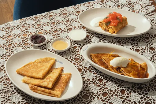 Команда ресторана средиземноморской кухни Глена Баллиса и Феликса Бермана Claudia в премиальном ЖК «Прайм парк» во главе с шеф-поваром Евгением Непокульчитским запускает масленичное меню, которое способно собрать всех близких за одним столом. В специальном меню — блины со слабосоленой форелью, яйцом и сметаной — сдержанное, чистое сочетание, которое сохраняет ощущение легкости. Блины с уткой конфи и соусом на основе коньяка и сморчков звучат более основательно, добавляя глубину и насыщенность вкуса. Завершают спешл блины «Креп Сюзетт» с апельсиновым фрешем и цедрой апельсина, дополненные ванильным мороженым: классическое сочетание с мягкой сладостью и выразительной цитрусовой нотой.