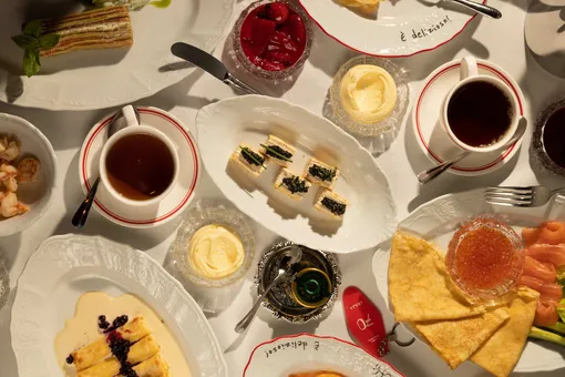 Среди сытных вариантов — два больших блина с томленой говядиной, мясным соусом, кремом из пармезана и чипсами топинамбура. Для тех, кто отмечает Масленицу особенно щедро, предлагаются дрожжевые блины с мясом камчатского краба и красной икрой с соусом берблан. Также доступен вариант на компанию: пшеничные блины со сметаной и тремя видами икры — малосольной лососевой, забойной стерляжьей и щучьей, взбитой с маслом и зеленым луком.