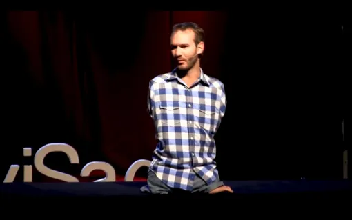 Ник Вуйчич родился с синдромом тетраамелии. Это значит, что у него с рождения не было рук и ног. В своём выступлении на TED он рассказывает, как преодолел трудности и насмешки и стал в чужих глазах таким же человеком, как и все мы.