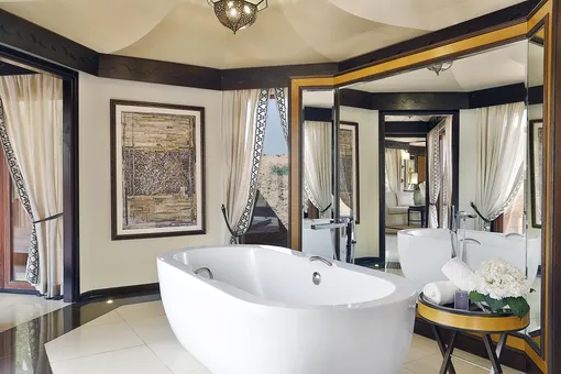 Любителям приватности Рас-эль-Хайма предлагает эксклюзивный опыт — отдых в Ritz-Carlton Al Wadi Desert . Он находится в самом сердце охраняемого заповедника Аль-Вади. Тихий курорт со 101 виллой позволит гостям окунуться в настоящую атмосферу роскошной жизни в пустыне. Просторные резиденции площадью 900 квадратных метров обеспечивают гостям полное уединение и безупречный комфорт. Виллы из глинобитного кирпича, оформленные в традиционном арабском стиле, органично вписываются в пустынный пейзаж, открывая завораживающие виды на бескрайние дюны. Интерьеры украшают изделия из дерева в стиле машрабия и атмосферные черно-белые фотографии аравийских дюн. В каждой вилле к услугам гостей — персональный дворецкий, готовый позаботиться о мельчайших деталях отдыха.