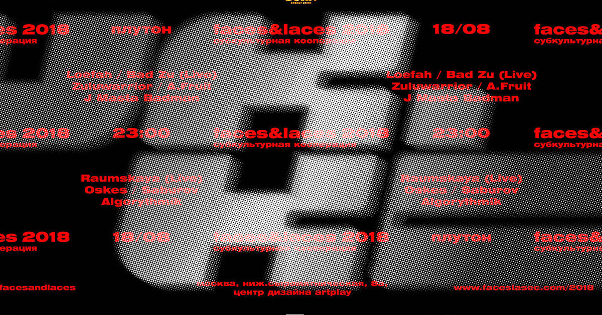 В субботу, 18 августа, между двух дней FACES&LACES, в пространстве «Плутон» состоится вечеринка UK.KO от организаторов выставки при поддержке BURN. Событие отдаст дань уважения британскому звуку, а хедлайнером станет LOEFAH — классик бэйс-музыки из Великобритании, повлиявший на современный британский звук. Поддержку ему окажут приверженцы лондонских традиций A.FRUIT, J MASTA BADMAN, BAD ZU и ZULU WARRIOR. Также гости услышат сеты от RAUMSKAYA, SABUROV, ALGORYTHMIK и OSKES.