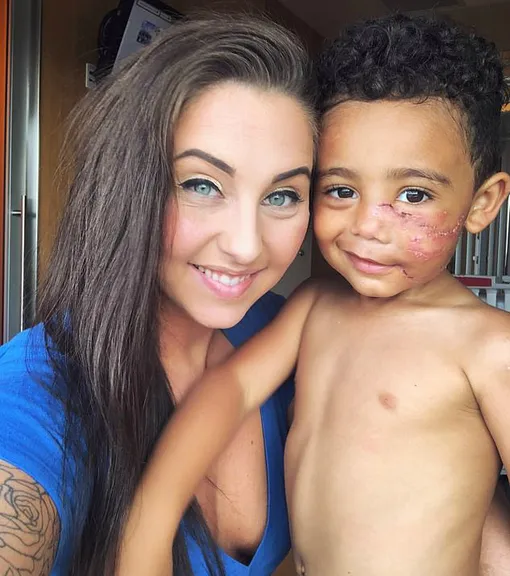 Медики предупредили Сару, что ей не стоит сразу заходить в палату к сыну, потому что у него было изуродовано лицо. Собака исцарапала щеки мальчика, при этом оказались задеты его лицевые нервы, кроме этого малыш лишился передних зубов после нападения.