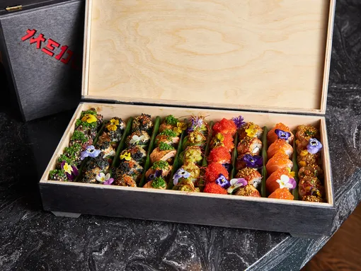 В лучших традициях яркой Азии предлагает встречать год Зеленой Деревянной Змеи шеф-повар Medusa Asian Kitchen Дмитрий Смирнов. Популярные новогодние боксы со свежайшими роллами и сашими доставляют в двух форматах: средний бокс и большой бокс. Фирменные роллы с угрем, лососем и тунцом станут отличным выбором для шумной вечеринки в аутентичном стиле.