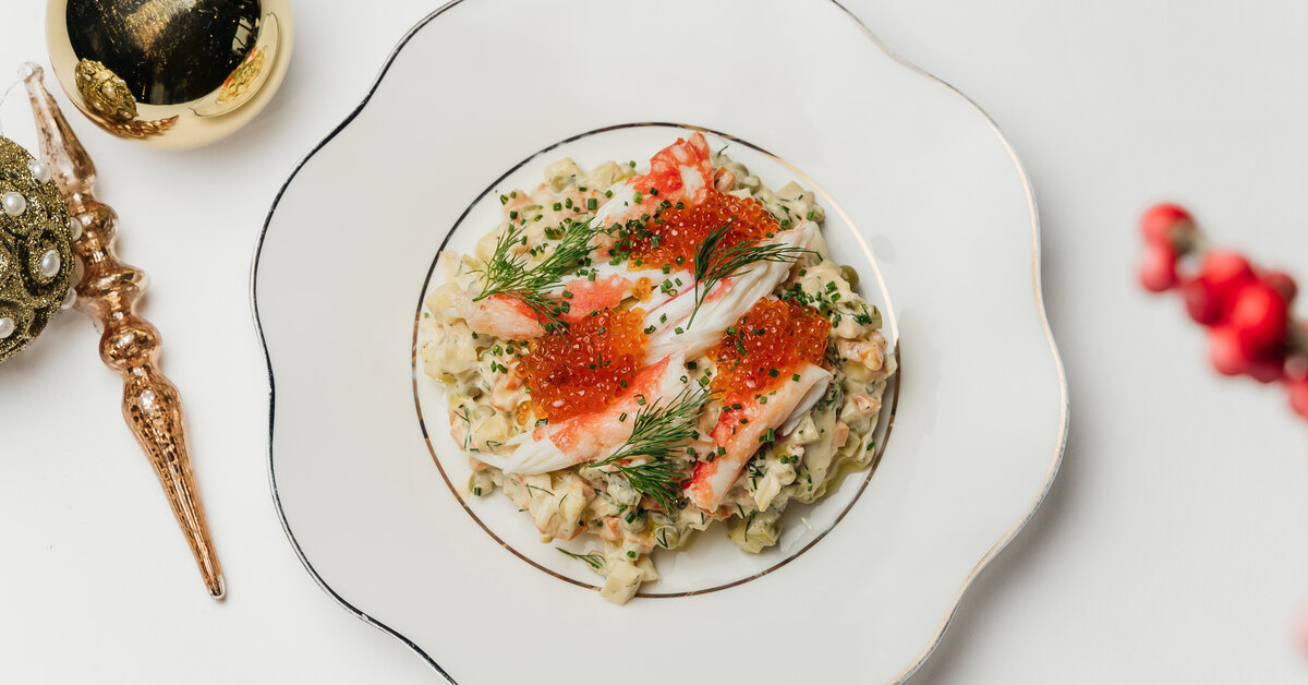 Французский Le Pigeon предлагает твист на классическую селедку под шубой — лосось на шубе, где все слои выкладываются в обратном порядке, а последним слоем селедку заменяет слабосоленый лосось. «Оливье» подадут с крабом или пастрами в двух объемах, а на десерт самый шоколадный торт — «Прага».
