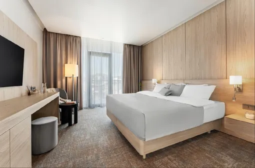 Санаторий предлагает 354 номера шести различных категорий, от стандартного до трехкомнатного люкса (площадью от 24 до 65 квадратных метров). Минималистичный дизайн и функциональное наполнение интерьеров поддерживают продолжают тренд на сонный туризм, обеспечивая гостям качественный, здоровый отдых. Для бронирования доступна также особая категория номеров — медсьюты, оборудованные инфракрасной сауной и массажными столами. К услугам гостей — персональный медицинский батлер, сопровождающий на всех этапах проживания.