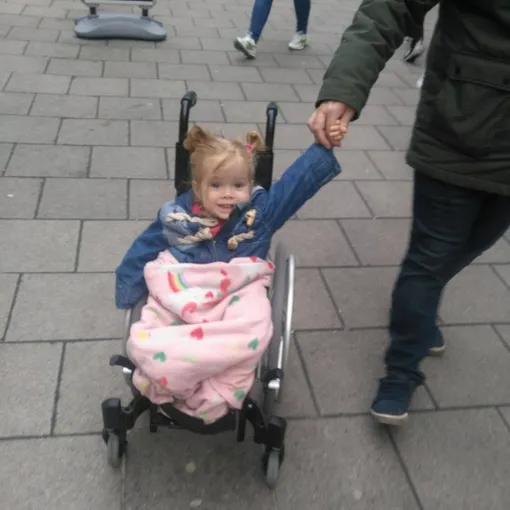 Парализованная двухлетняя девочка исполняет трюки на инвалидной коляске