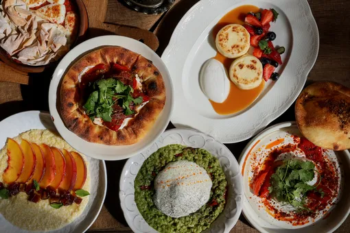 В ресторане появились ближневосточные завтраки от гастрономического медиа «Соль» и его создателя Ивана Глушкова. Попробовать их можно с 10:00 до 13:00 по будням и с 10:00 до 14:00 по выходным. В меню - 7 новинок: зеленая гречка с томатами и муссом из козьего сыра, рваная говядина с томатами на тонкой лепешке, жареный халуми с овощами и тающим тестом фило, а также чылбыр с яйцом пашот и пряным маслом на турецкий манер. Для сладкоежек принесут пшенную каша с персиком и финиками, чиа-пудинг с финиками и фисташками или пухлые сырники с нежной тахини, соленой карамелью и ягодами.