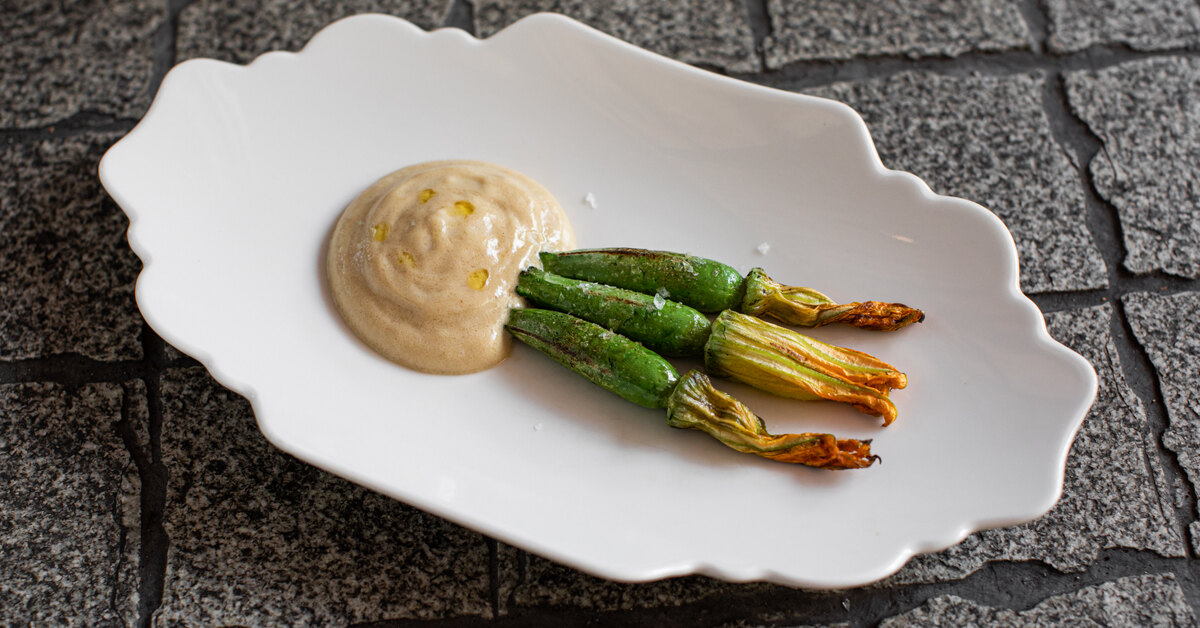 Концепт-шеф Адриан Кетглас и шеф Антон Лебедев представили шесть новых позиций в меню — апдейт вдохновлен испанскими традициями. Открыть вечер стоит Antojos, что переводится как «маленькие желания». Это деликатесные закуски: цветы цукини с крабом и аргентинской креветкой, молодые кабачки на углях с воздушным муссом из сесины (на обложке дайджеста), потрясающая запеченная на асадоре фермерская морковь с терпкой ботаргой.