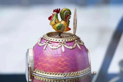 В центре внимания — реставрация часов-яйца Ротшильда, созданного ювелиром фирмы Фаберже Михаилом Перхиным в 1902 году. Это уникальное произведение искусства выполнено из драгоценных материалов, украшено розовой эмалью по гильошированному фону и оснащено сложным часовым механизмом работы Николая Роде. Особенность изделия — миниатюрный органчик, приводящий в движение фигурку петушка, которая поет и двигается. Износ механизма свидетельствует о его популярности в прошлом. Для демонстрации работы часов рекомендуется использование видеозаписи. После завершения реставрации шедевр вернется в залы памяти Карла Фаберже в Главном Штабе.