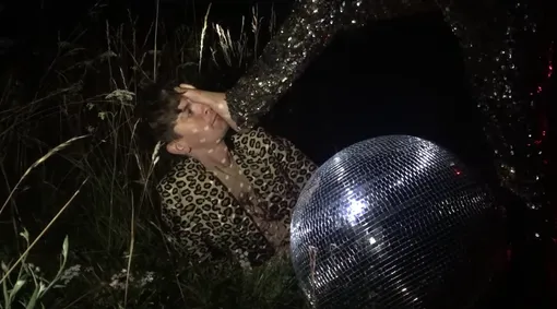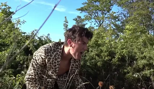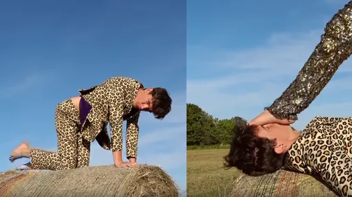 Постепенно «добыча» в пайетках перестает убегать от «хищника» в леопарде, и они начинают танцевать вместе. Днем — на сене, ночью — в жухлой траве.