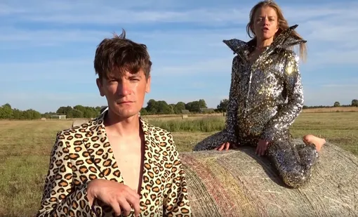 Что касается видеоряда, то наш любимый шоумен, юморист и ведущий Александр Гудков и вокалистка СБПЧ Женя Борзых одеты максимально экстравагантно и стильно, так что картинка ничуть не уступает тексту. Саша в леопардовом пиджаке гонится за Женей в футуристическом комбинезоне с пайетками. Оба делают максимально безумные лица.