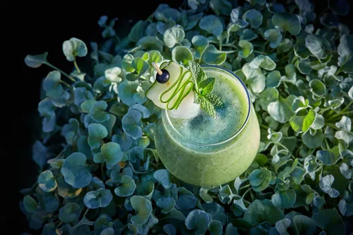 Отдельное слово о лимонадах и органическом Wellness Bar. В напитках собраны отечественные и зарубежные суперфуды и российские сезонные специалитеты. Например, в одном бокале лимонада можно обнаружить клюкву и можжевельник, ежевику и базилик и даже виноград с лемонграссом. Из Wellness-напитков не пропустите йогуртовый ласси с семенами чиа, ванильным сиропом и пюре из маракуйи или со жгучим имбирем, миндалем и специями; сочетающий несочетаемое смузи из сладких ананаса и банана с щавелем и сиропом из чая матча; а также фреш из личи и огурца.